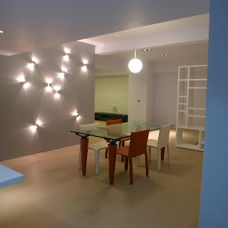裝潢處處顯出他太太的巧思, 書房牆敲空做造型, 餐廳客廳隔間打掉, 空間頓時變大了,